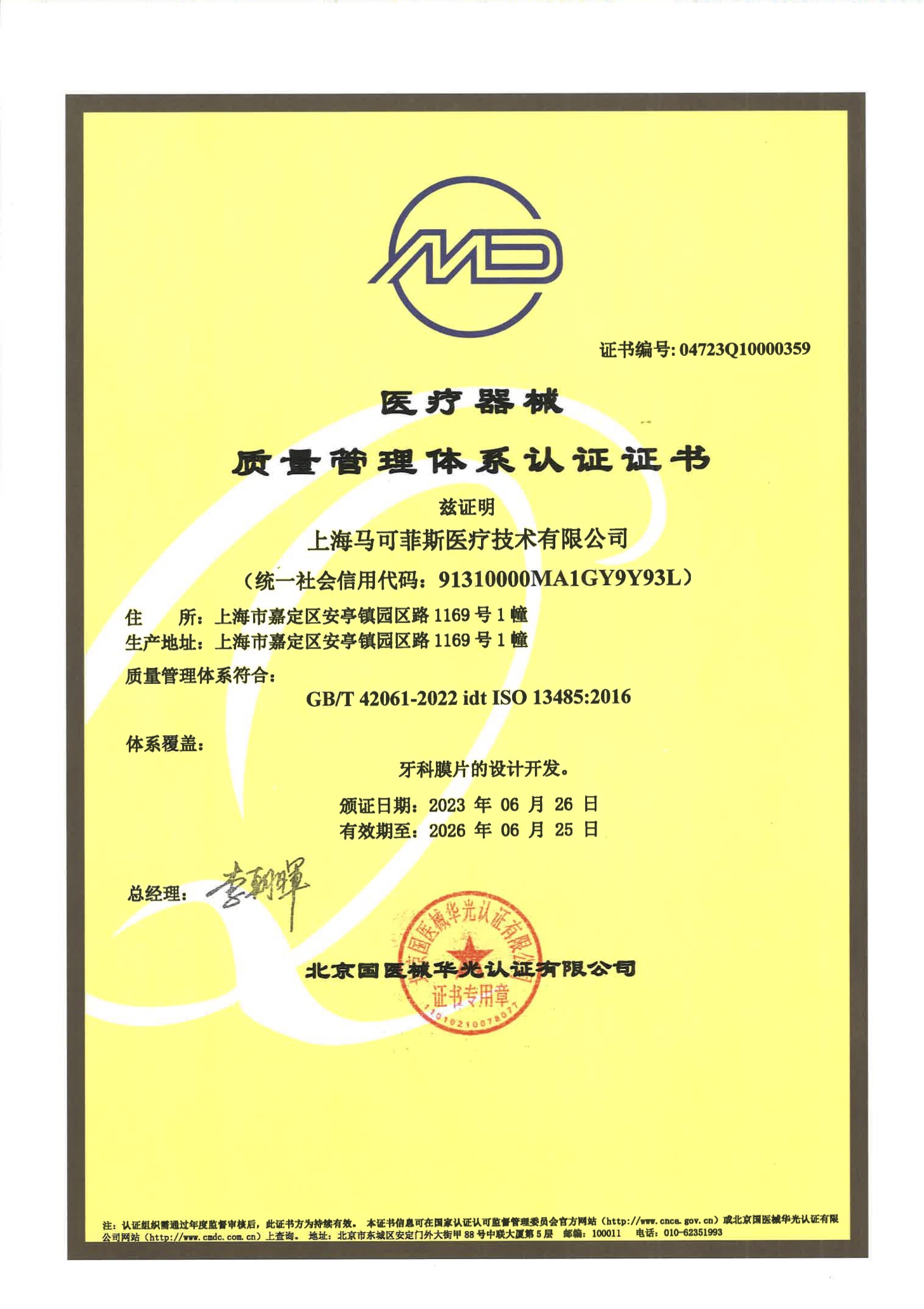 ISO 13485體系認(rèn)證,二類醫(yī)療器械注冊(cè)證和生產(chǎn)許可證,產(chǎn)品出口超過40個(gè)國家和地區(qū),功能性膜片試制成功